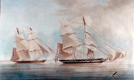 Brig H.M.S. Black Joke capturing the slaver El Almirante