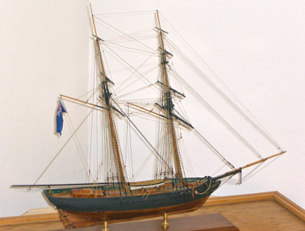 Deck and Rigging plans are based on drawings by the late Howard I. Chapelle, which were obtained from the National Museum of Amercan History (Smithsonian). The use of the British Navy’s Blue Ensign is based on information provided by the Royal Naval Museum. It is based on the year 1833 when the vessel was under the command of Lieutenant Commander George Rose, and the West Africa Station was commanded by Rear Admiral of the Blue Sir Frederick Warren.